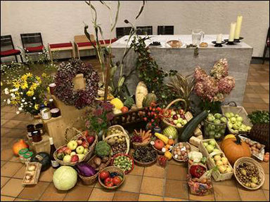Als Mitarbeiterinnen und Mitarbeiter des Schöpfers haben wir die Verantwortung für das zerbrechliche Ökosystem unserer Erde, für den Pflanzen- und Artenreichtum. Die aktuelle Klimakrise zeigt, dass wir schon Jahrzehnte lang die Erde immer mehr ausbeuten, um auf unsere Kosten zu kommen: immer mehr für einzelne Personen und Firmen, Staaten und Kontinente –die Bewältigung der Klimakrise wird uns einiges kosten. „Wir müssten bescheidener werden“ – dazu mahnte Papst Franziskus in seiner vor zehn Jahren veröffentlichten Enzyklika Laudato si; wir müssten „das Notwendige zu teilen, damit Not gewendet wird“ (vgl. LS 52 und v.a. LS 203-221). Ich kaufe einfach ein – und dann kommt bei vielen das große Wegschmeißen. Dabei ist vieles zu gut für die Tonne! Denk mal nach, was du ändern kannst, damit nicht mehr wie in Deutschland durchschnittlich fast 75 kg Lebensmittel pro Person jährlich in die Tonne wandern! Gott sei Dank – Erntedank!